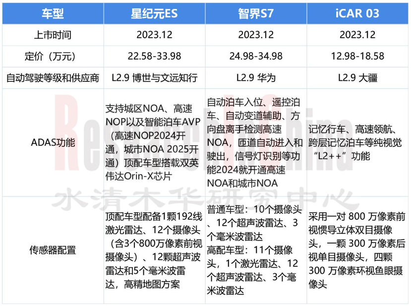 在华为和小鹏、理想等新势力的带动下,国内各主机厂纷纷布局高速NOA和城市NOA,并且采用了多供应商战略。以奇瑞为例,2023年12月上市的三款车型星纪元ES、智界S7、iCAR 03均具备NOA功能,其技术供应商分别为 博世+文远知行、华为、大疆。