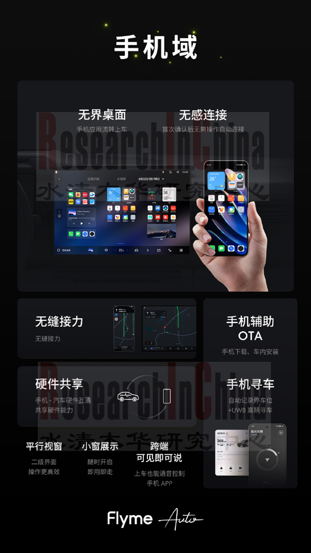 •团队贯通(魅族、亿咖通、领克):将魅族的手机产业、亿咖通的计算平台以及主机厂的个性化需求进行整合,打通跨行业生产流程——在汽车研发的最初阶段,就已经为手机、芯片及相应的功能预留了位置。